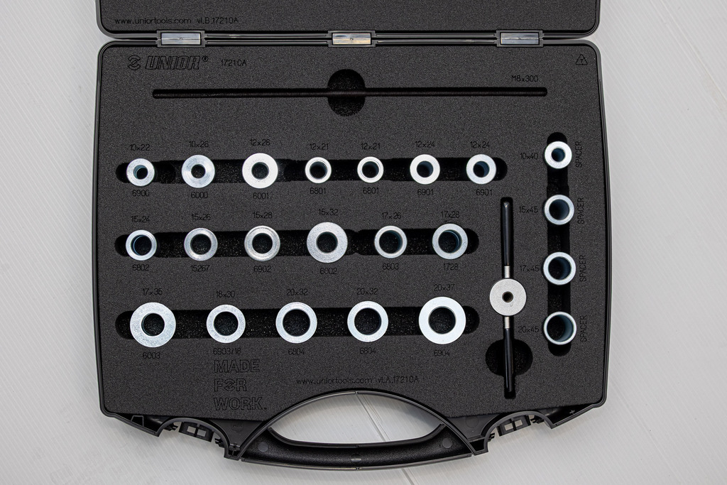 • The set is compatible with a wide range of popular sealed bearing hubs on the market. It consists of two bearing press handle with threaded rod, over axle bearing adapters and dedicated spacers to cover the most common axle and bearing combinations.